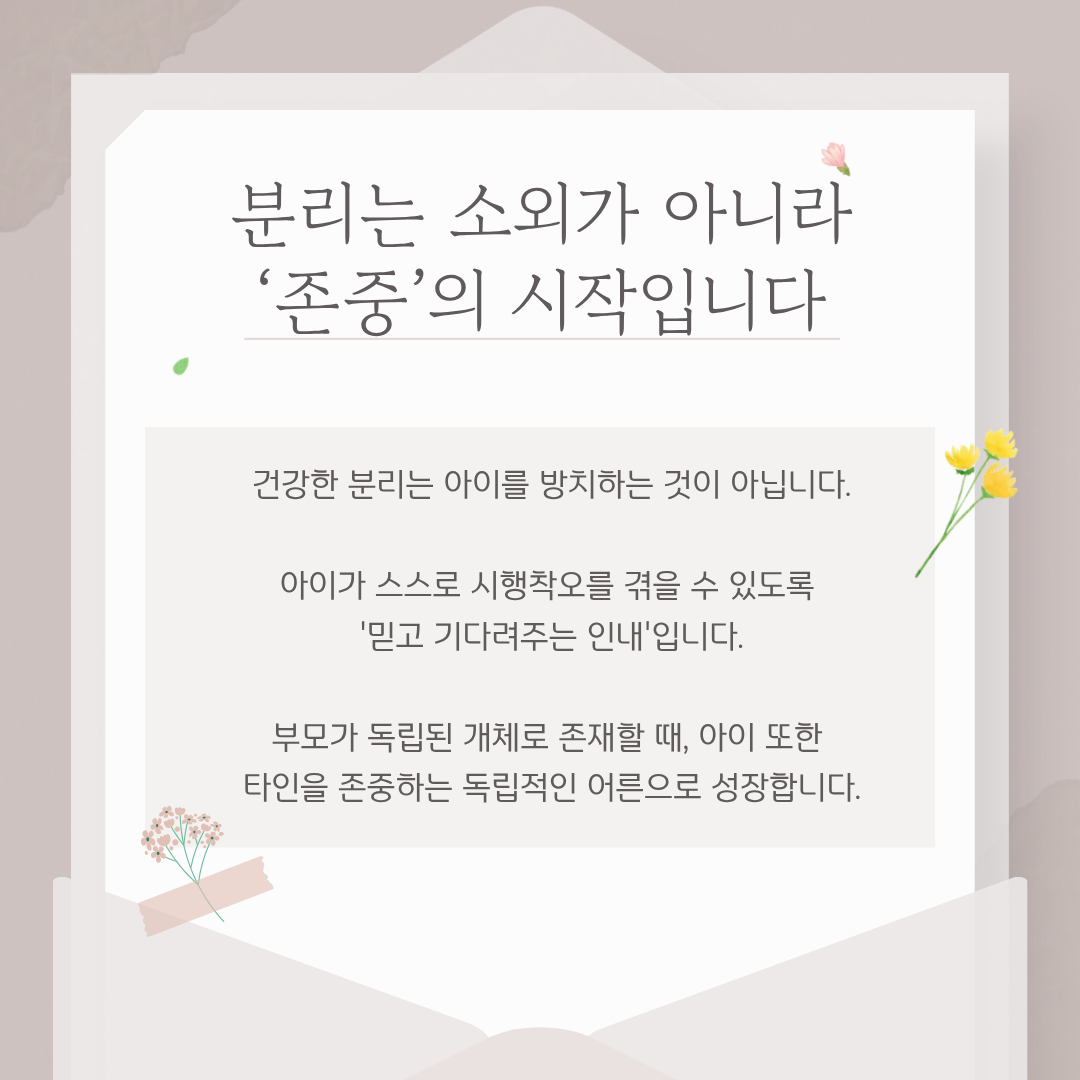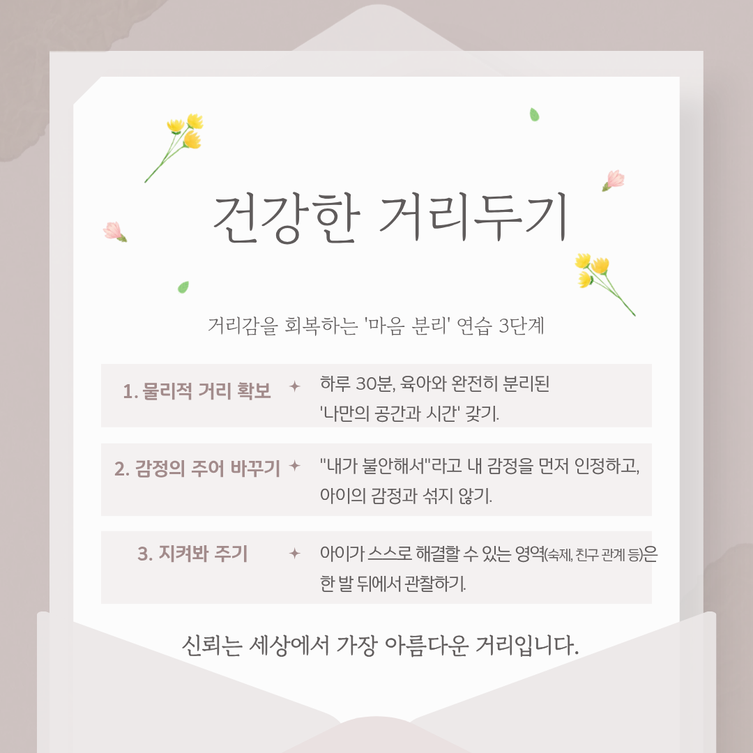 부모이음 부모이음 부모이음 부모 도움 자료 부모 도움 영상 부모 마음 숨표(,) 프로젝트 3) 건강한 거리감이 사랑을 완성한다 관리자 2026-02-14 조회수 8 펼쳐보기 모아보기 첨부파일 1.png (350KB) 2.png (665KB) 3.png (159KB) 4.png (202KB) 5.png (218KB) 6.png (184KB) 7.png (193KB) 자동롤링 정지 자동롤링 시작 이전글 부모 마음 숨표(,) 프로젝트 4) 육아 번아웃 탈출하기 2026-02-14 다음글 부모 마음 숨표(,) 프로젝트 2) 내 안의 서툰 부모 안아주기 2026-02-14 목록