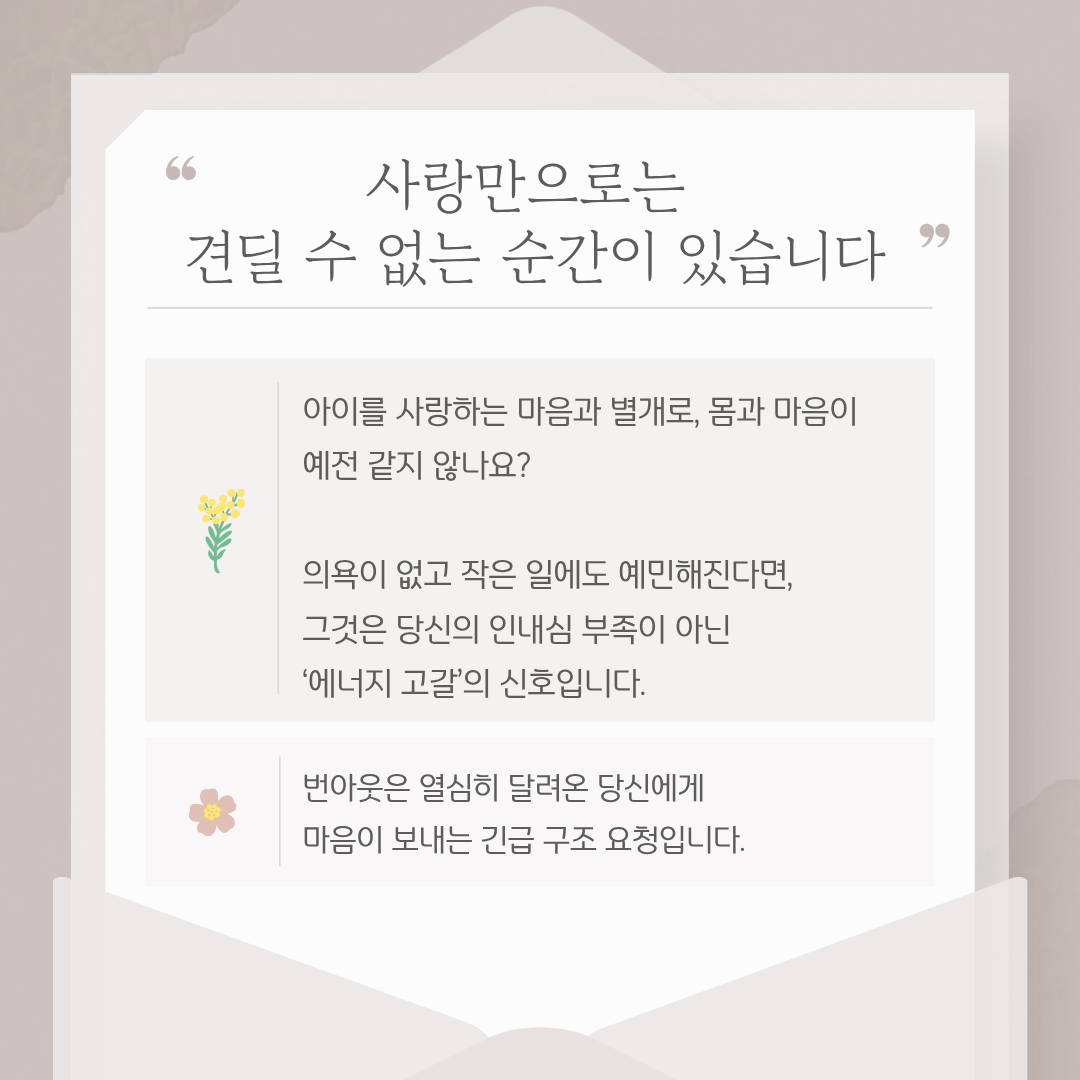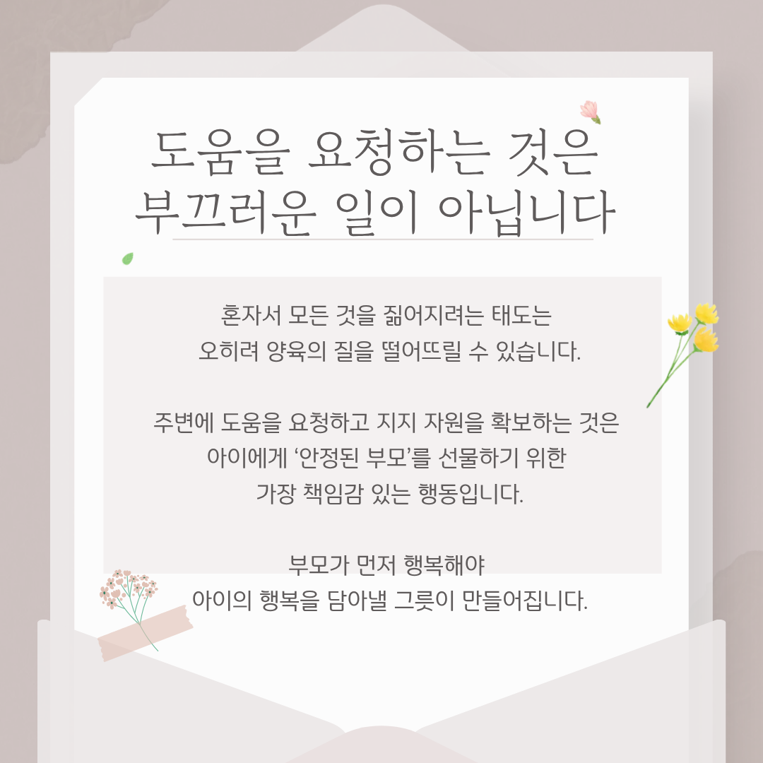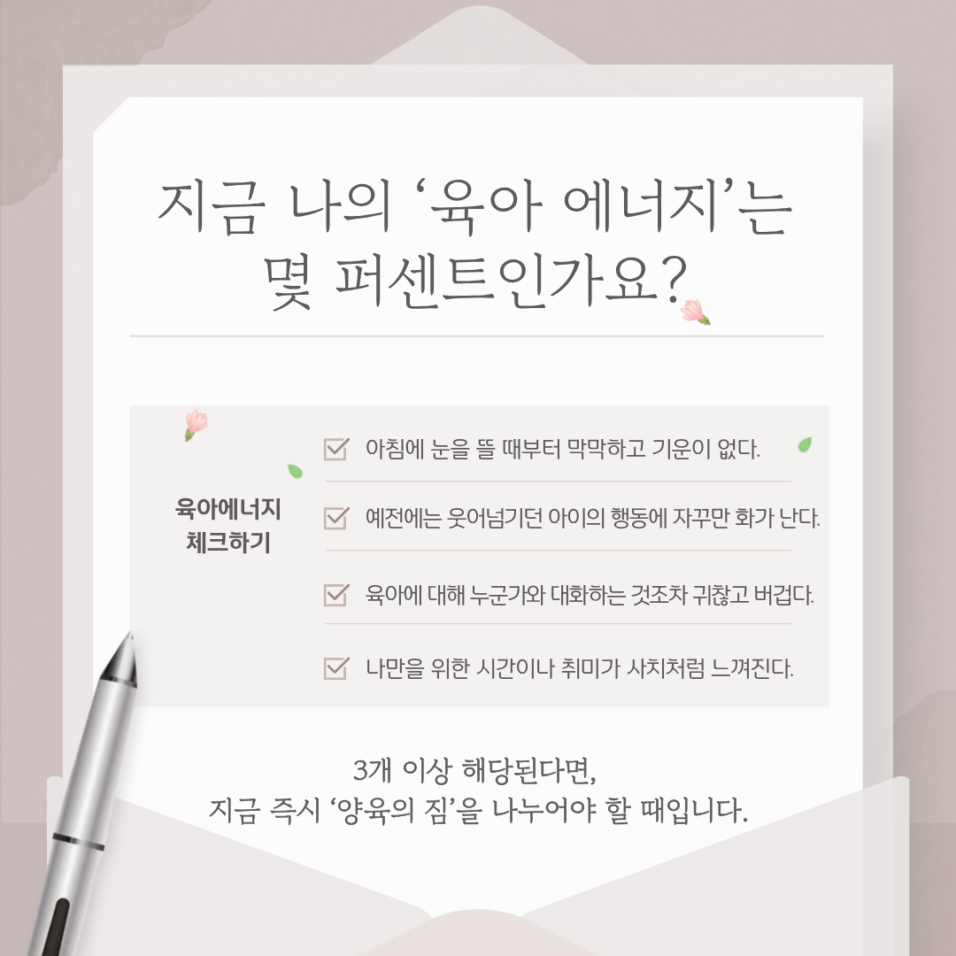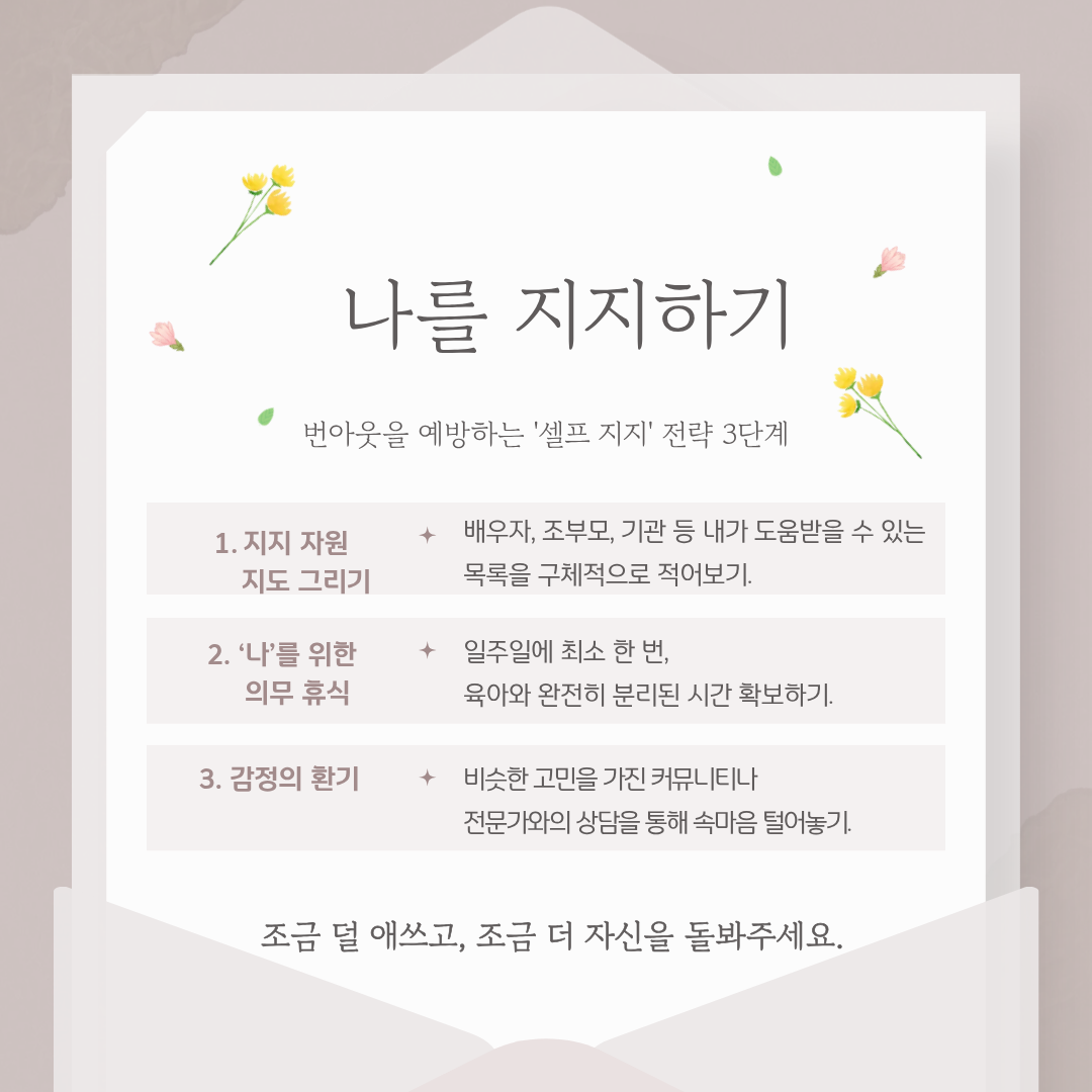 부모이음 부모이음 부모이음 부모 도움 자료 부모 도움 영상 부모 마음 숨표(,) 프로젝트 4) 육아 번아웃 탈출하기 관리자 2026-02-14 조회수 10 펼쳐보기 모아보기 첨부파일 1.png (264KB) 2.png (668KB) 3.png (169KB) 4.png (200KB) 5.png (217KB) 6.png (196KB) 7.png (190KB) 자동롤링 정지 자동롤링 시작 이전글 부모 마음 숨표(,) 프로젝트 5) 내 삶의 주인으로 살기 2026-02-14 다음글 부모 마음 숨표(,) 프로젝트 3) 건강한 거리감이 사랑을 완성한다 2026-02-14 목록