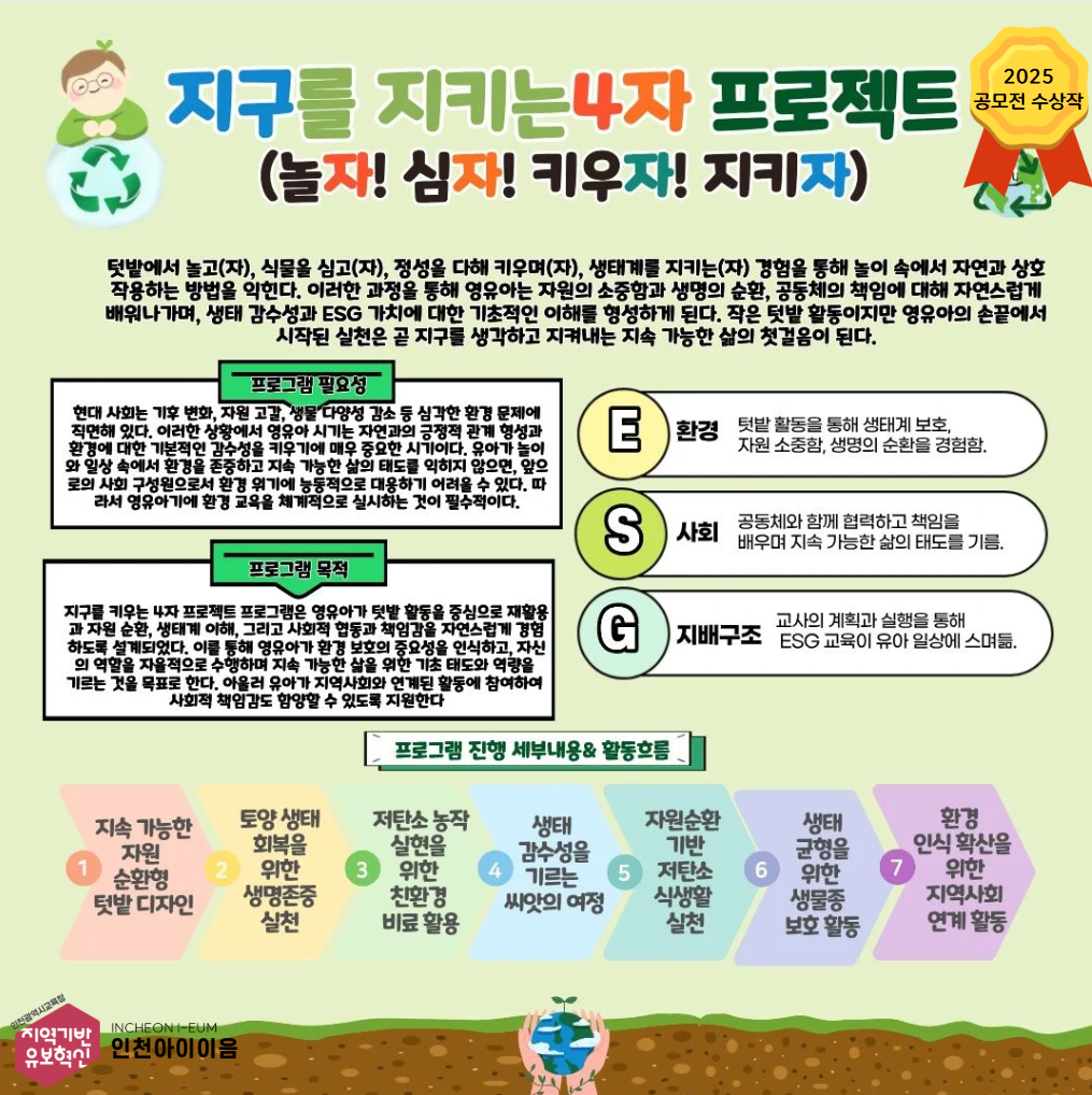 [2025 공모전 수상작_우리반 특색 활동] 지구를 지키는 4자 프로젝트 놀자! 심자! 키우자! 지키자!